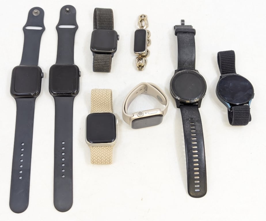 8x Smart Watches / Fitness Trackers, Brands Include Apple, Garmin, EtcItems Untested, Unknown Working Conditions, Metal Bracelet Fitness Tracker Bracelet LooseSold As Lot