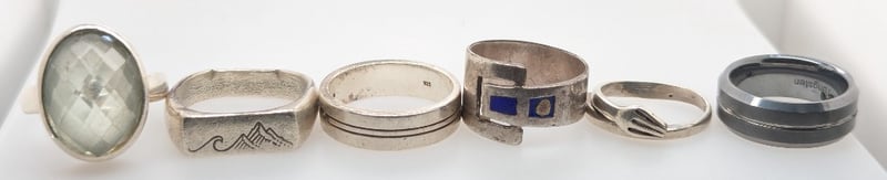 5x 925 Silver Rings And 1x Tungsten Ring
