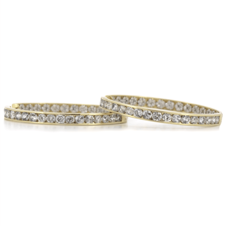 14K YELLOW GOLD, 5.03CT TDW DIAMOND, HOOP EARRINGS.