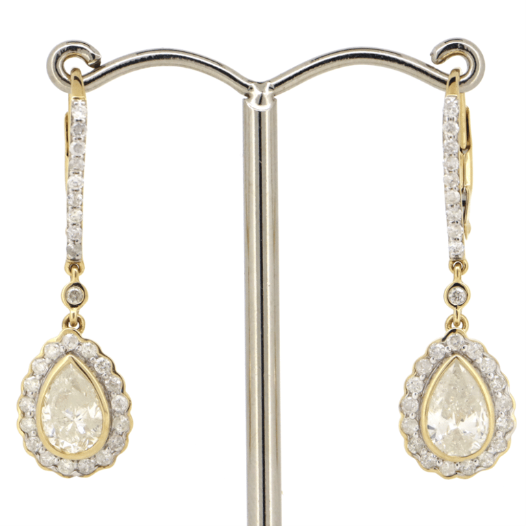 The Earrings Feature, 2 Pear Modified Brilliant Cut, Diamonds (2.05Ct Tdw, K-L Colour, Si1-Si2 Clarity), Bezel Set. Encompassing The Centre And Decorating The Hooks Are, 44 Round Brilliant Cut, Diamonds (0.74Ct Tdw, G-H Colour, Si1-Si2 Clarity), Bead/Bezel Set. The Earrings Feature Shepherd Hooks.