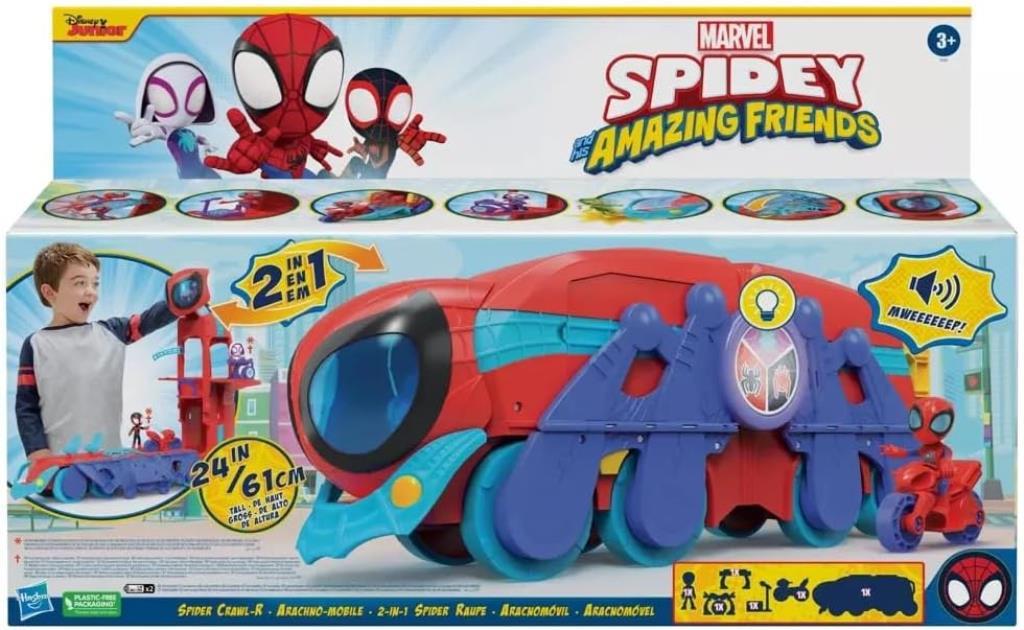 RRP $239 MARVEL SPIDEY AND HIS AMAZING FRIENDS - SPIDER CRAWL-R 2 in 1 PLAYSET- New Item - Original Seals- Original box- This exciting 2-in-1 mobile HQ playset converts from a large-scale rolling vehicle into a 60-cm-tall, multi-level HQ tower, complete with lights and sounds