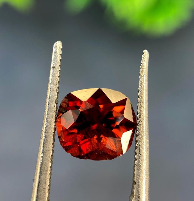 1.75 CARATS NATURAL SPLENDID ALMANDINE GARNET Condition: 1.75 Carats Natural Splendid Almandine GarnetStone = Natural GarnetWeight = 1.75 Carats Colour = Pigeon BloodCut = FancyNote = Natural, no treatmentLustre = Excellent Note = Gem Cil, Certified, Precise Custom Cut (Not Commercial) 0488211+14