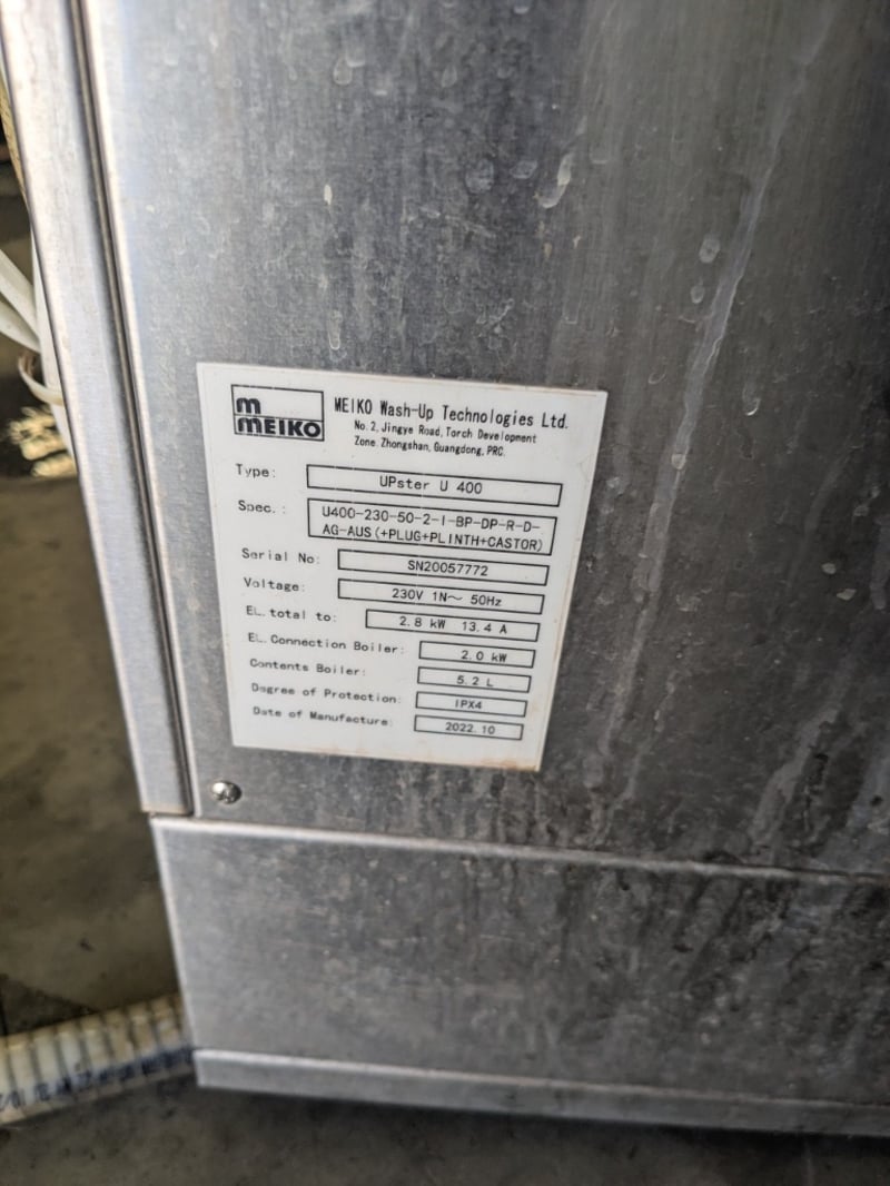 Commerical Meiko ‘Upster’ Glasswasher 460mm Model: U400 Dimensions: 86cmH x 60cmW x 45cmL