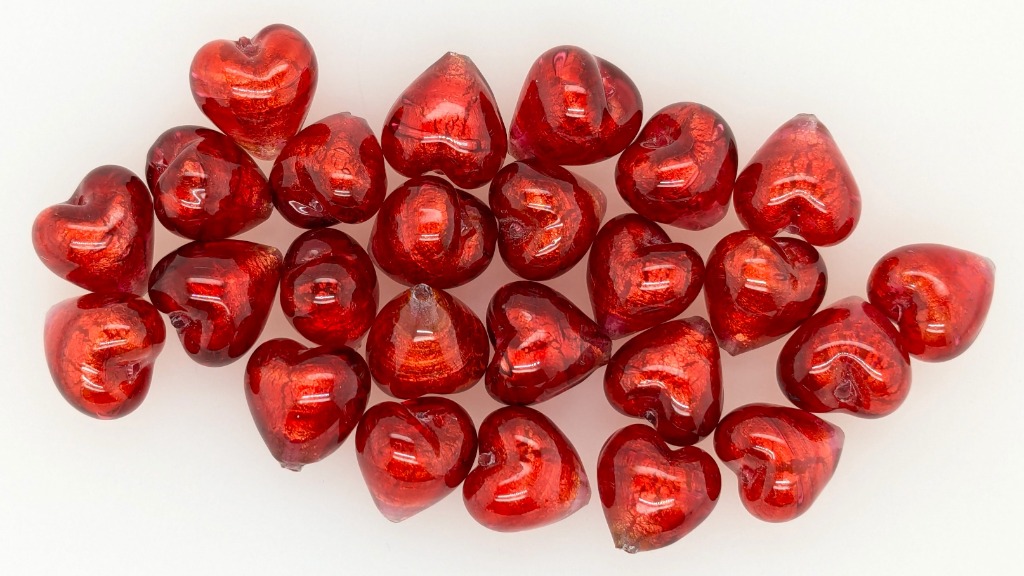 25 X ITALIAN MURANO DRILLED BEADS WITH STERLING SILVER BOLT RING Colour: Light Red, Shape: Heart, Condition: Good - Refer To Images FC 162953+37