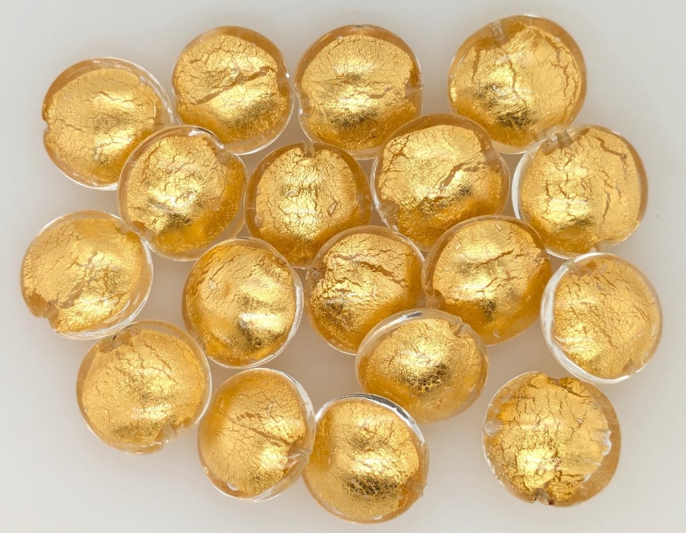 18 X ITALIAN MURANO DRILLED BEADS Colour: Yellow, Shape: Disc, Size: 18Mm Condition: Good - Refer To Images FC 162953+39