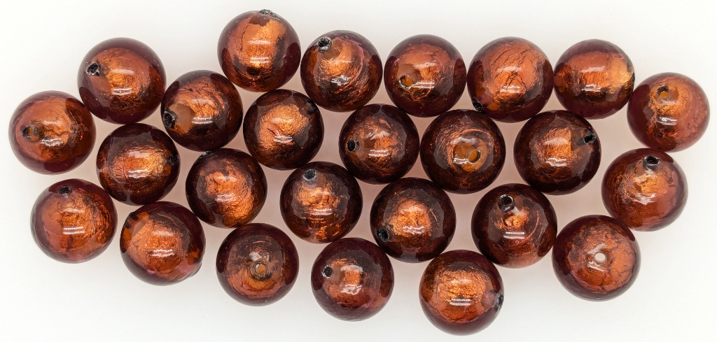 25 X ITALIAN MURANO DRILLED BEADS WITH STERLING SILVER BOLT RING Colour: Brown, Shape: Round, Size: 12Mm Condition: Good - Refer To Images FC 162953+41