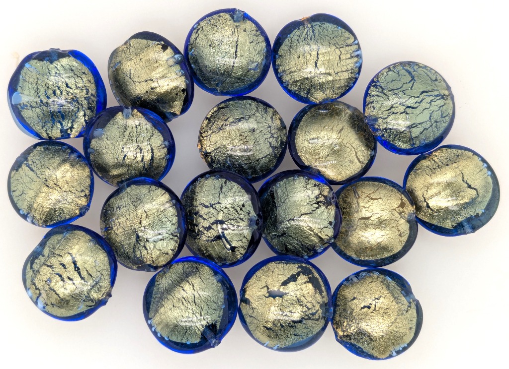 18 X ITALIAN MURANO DRILLED BEADS WITH STERLING SILVER BOLT RING Colour: Blue, Shape: Disc, Size: 18Mm Condition: Good - Refer To Images FC 162953+42