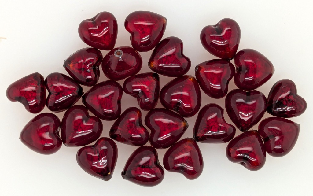 25 X ITALIAN MURANO DRILLED BEADS WITH STERLING SILVER BOLT RING Colour: Red, Shape: Heart, Condition: Good - Refer To Images FC 162953+43