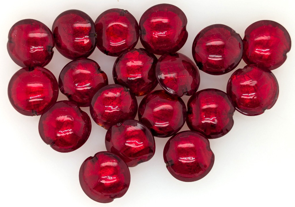 18 X ITALIAN MURANO DRILLED BEADS WITH STERLING SILVER BOLT RING Colour: Red, Shape: Disc, Size: 18Mm Condition: Good - Refer To Images FC 162953+48