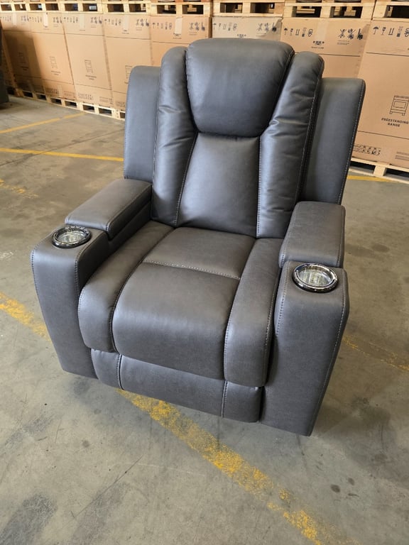 1 seater electric recliner leather upholstery Dimensions approximately: 100cmH x 90cmW x 70cmLNote: general wear, cords may be incomplete