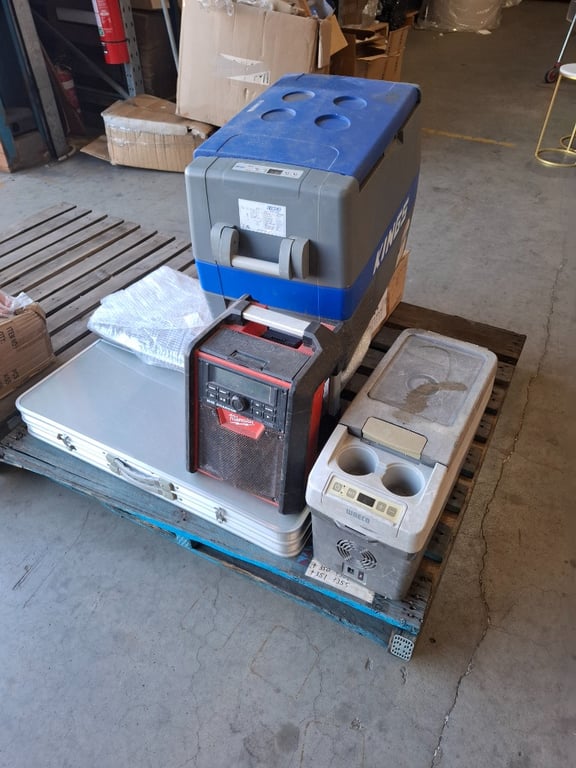 Assorted lot of kings eske, Milwaukee radio & moreNOTE: UNKNOWN WORKING CONDITION SOLD AS LOT