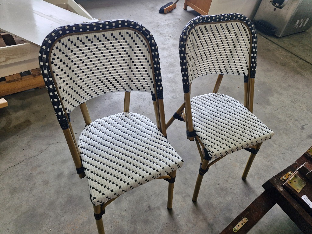 Dining Chairs, plastic cane style frame with Ratan seats, Qty of 2 SOLD AS LOT