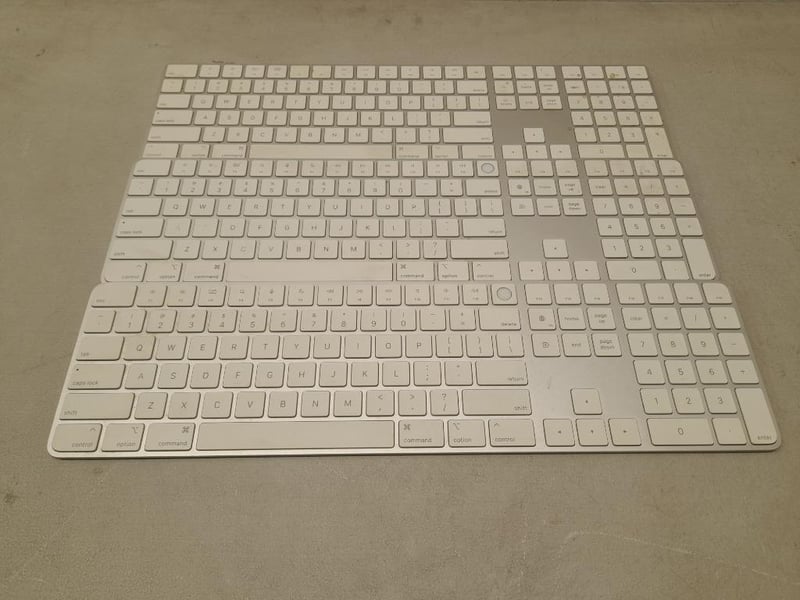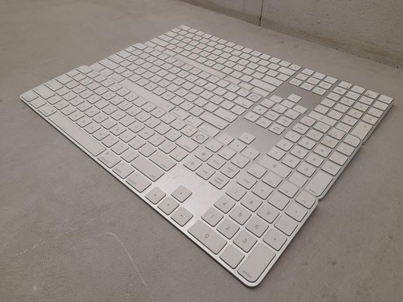 Apple Keyboards, White finish- Keyboard - Apple Magic A2520, 2nd Gen, numeric keypad, Bluetooth and touch ID, Qty 2- Keyboard - Apple Magic A1843, 1st Gen, numeric keypad, Bluetooth, Qty 1Note: Minor signs of wear consistent with regular use, cable NOT included. Units are untestedSold as lot