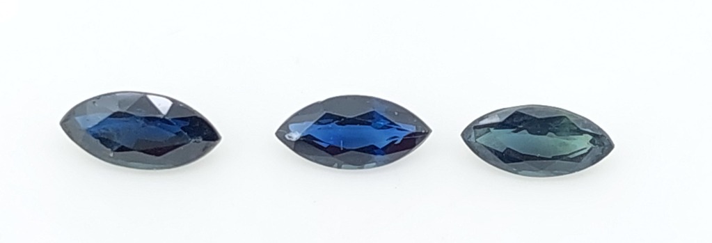 2.24 CTW SAPPHIRE 3 Stones, Marquise Cut, 2 Blue 1 Green. Condition: Good - Refer To Images FC 162952+63