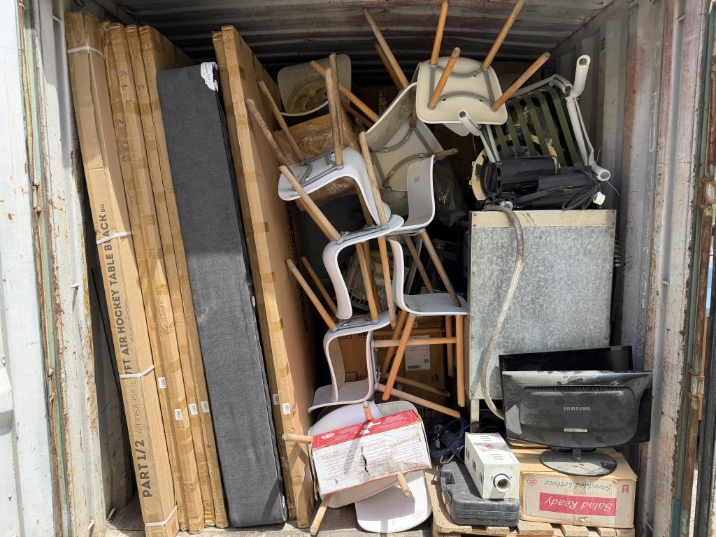20ft container of assorted goods, including Medical Supplies, Household Furniture, Accessories, Salvage Catering gear, and more NOTE: MUST TAKE ALL, CONTAINER NOT INCLUDED SOLD AS LOT