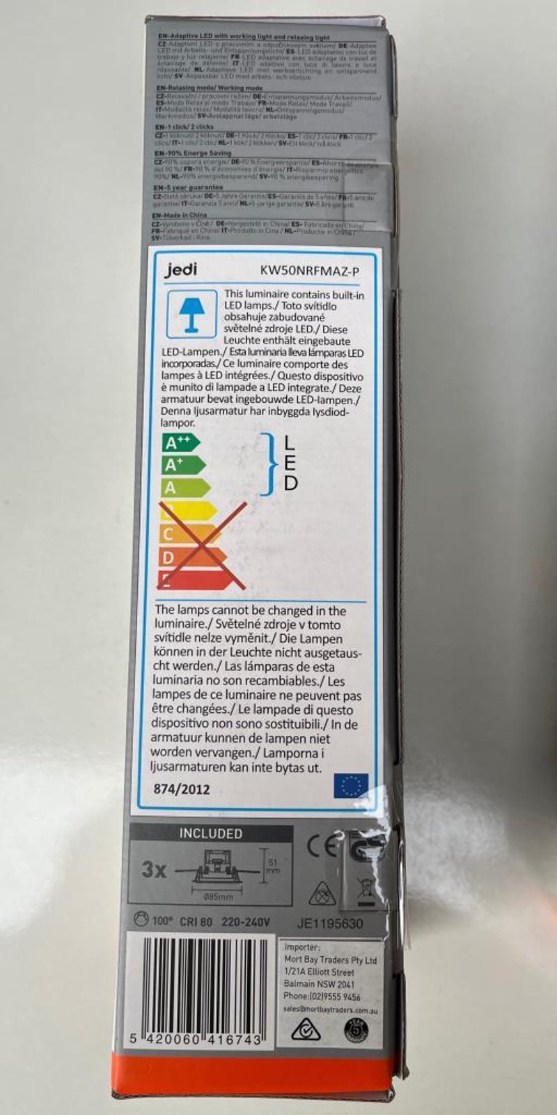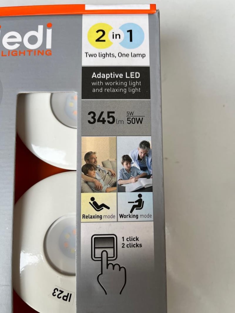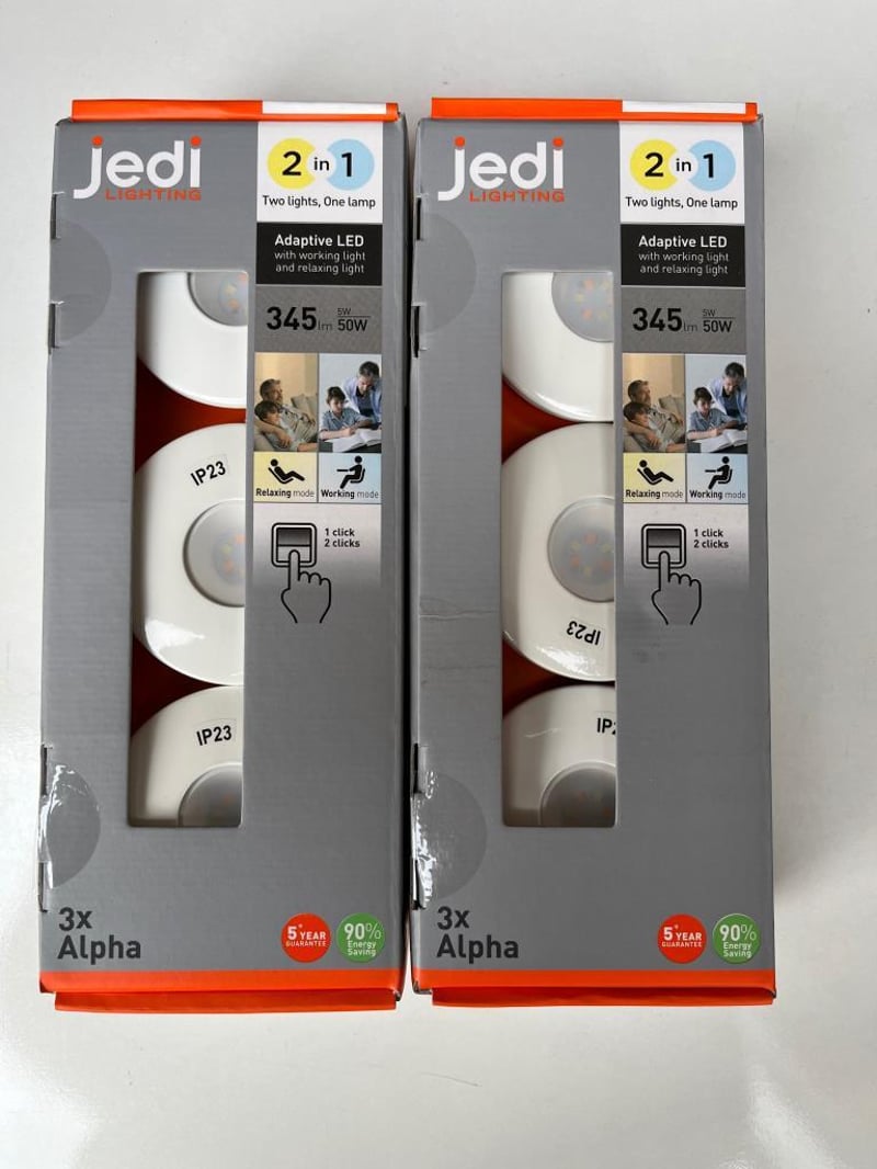 2 X Set of 3 Down Light Adaptine 2in1 Warm and Bright capable, 90% energy saving, 50W, 345lm, powder white finish SOLD AS 1 LOT