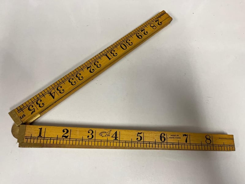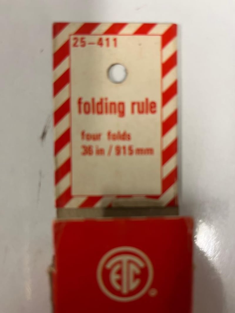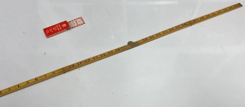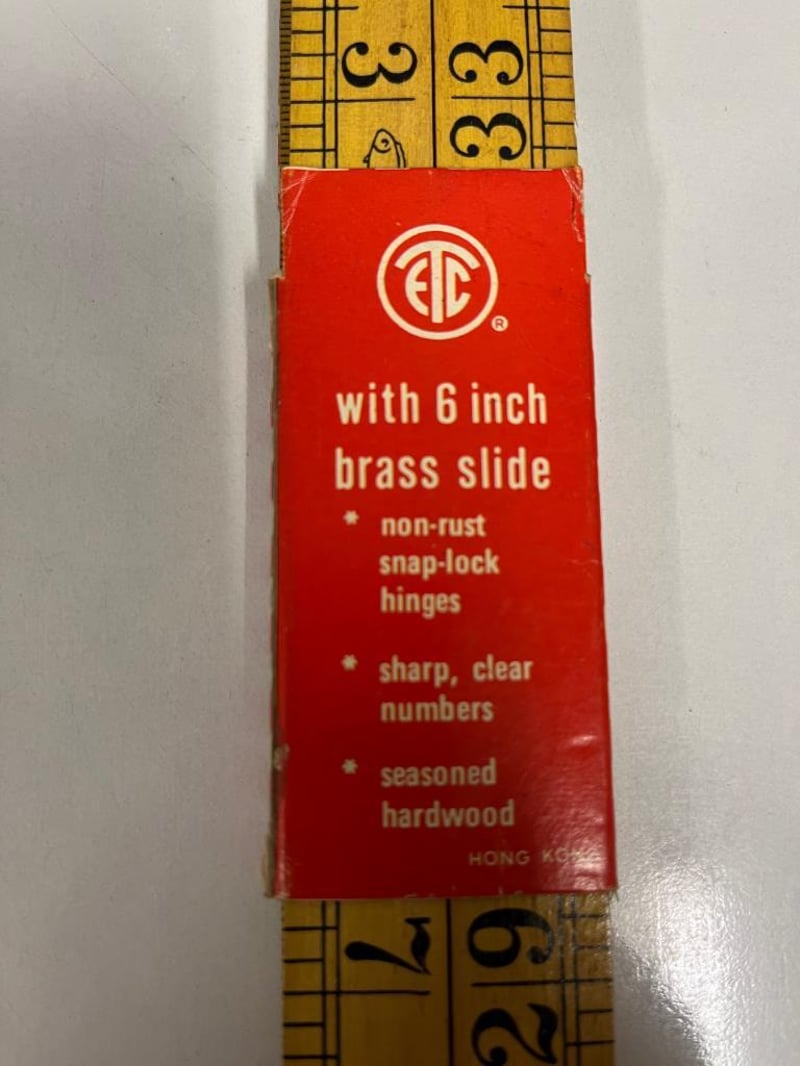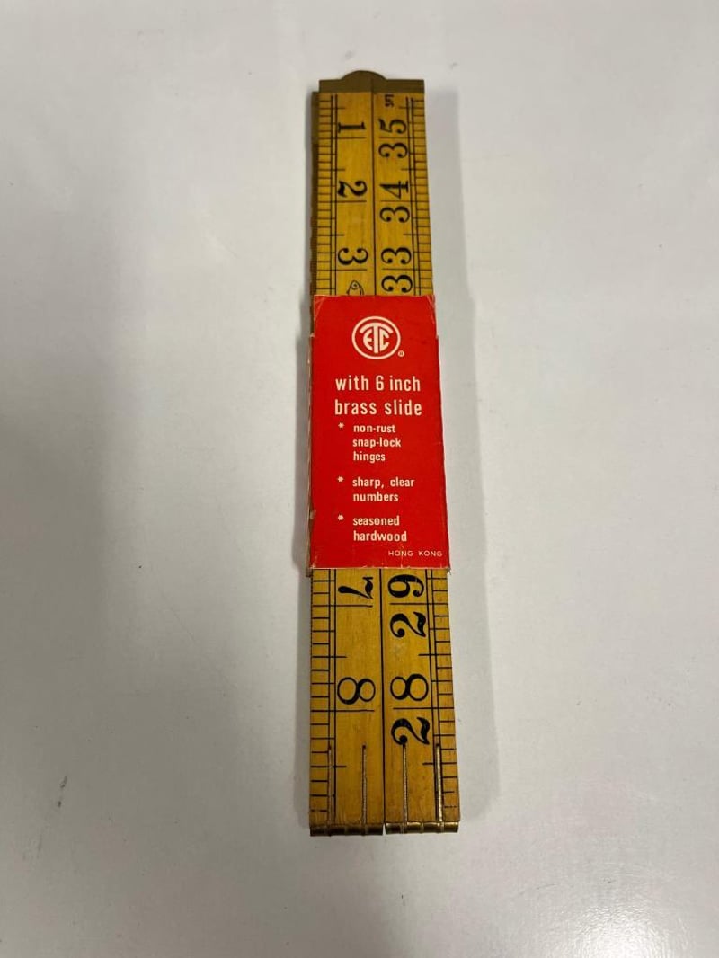 Vintage Folding Ruler, four folds, 36inch-915mm, Brass 6 inch Slide, non-rust hinges, sharp clear numbers, seasoned hardwood