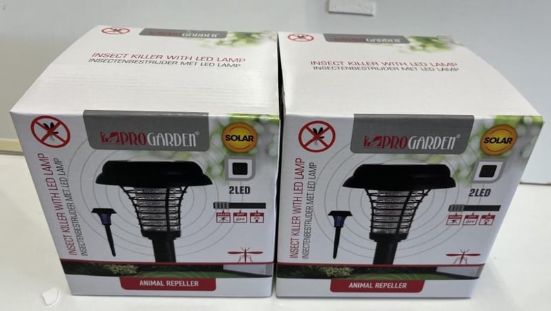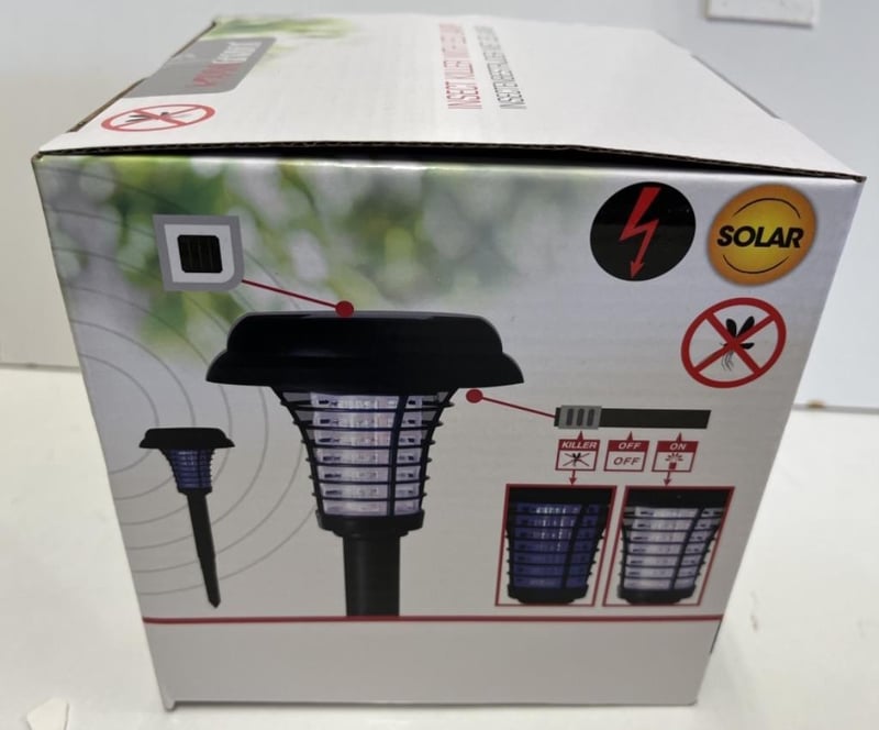 2 X Solar Insect Killer with LED Lamp, 40cm tall x 14.5cm wide, 3 modes, off, lamp only, lamp and zap SOLD AS 1 LOT