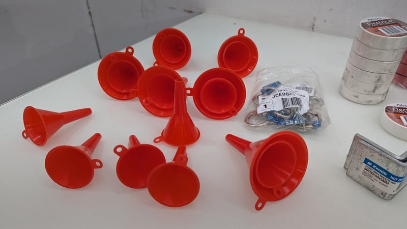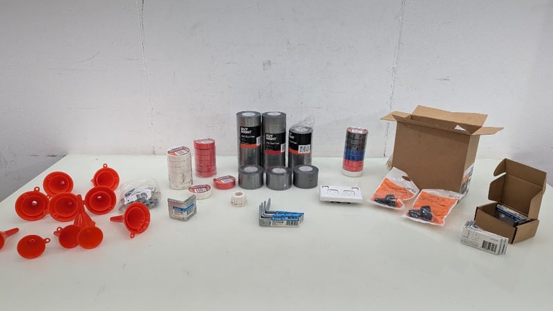 Assorted Pack, Includes Various Angle Brackets, Duct Tape, Funnels andore, Quantity Per Lot Sold As Lot