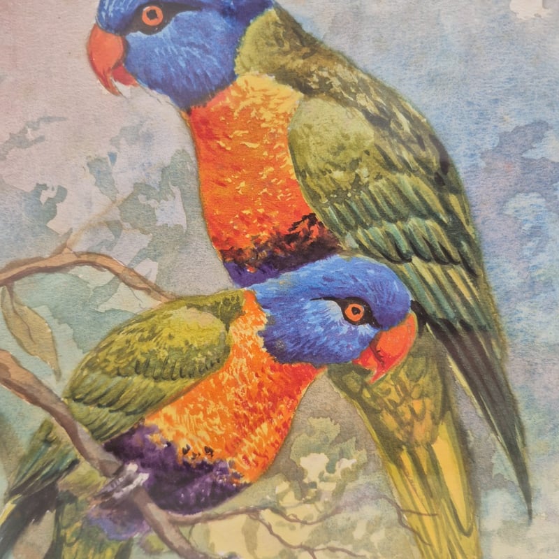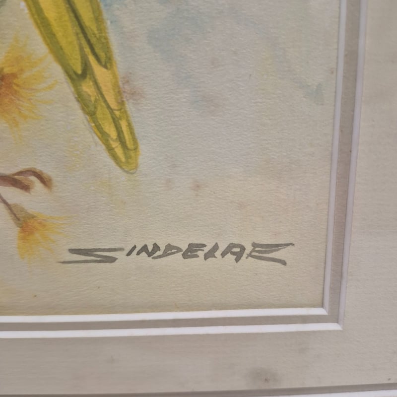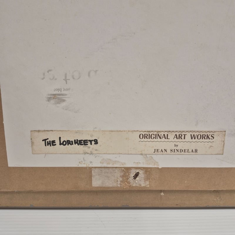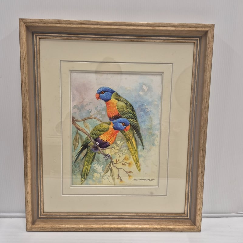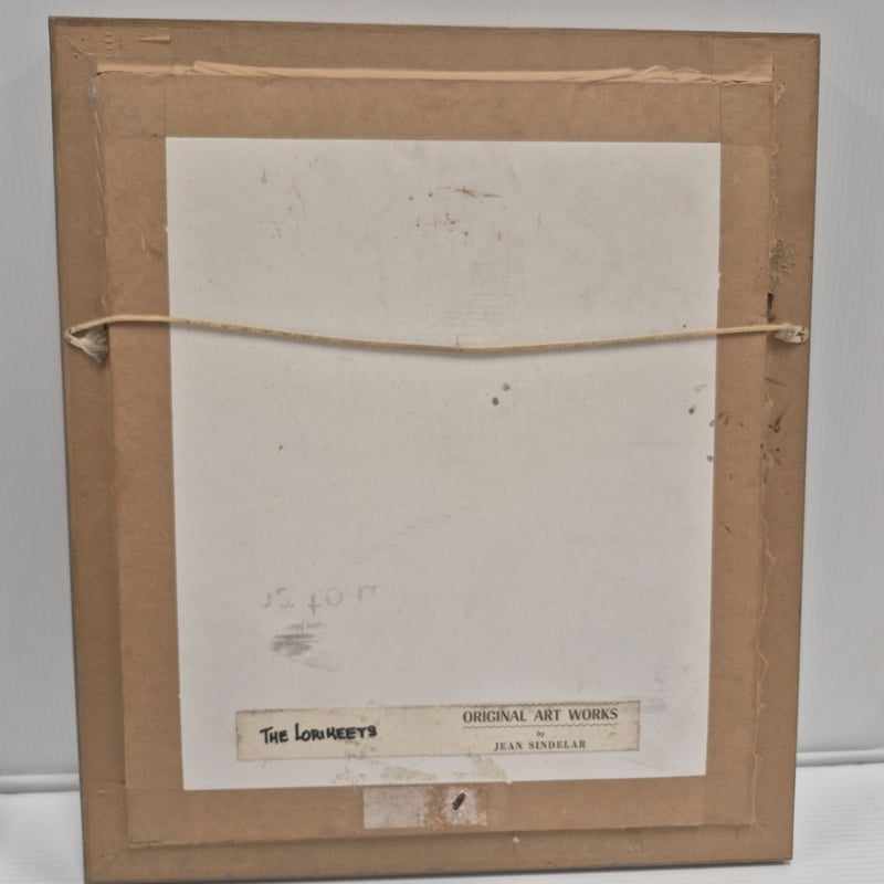 GOLD FRAMED ORIGINAL WATERCOLOUR PAINTING ON CANVAS ARTIST: JEAN SINDELAR TITLE: THE LORIKEETS SIGNED: LOWER RIGHT Item Size: Height: 49cm, Width: 43cm, Depth: 3cm Condition: Good - Refer To Images 586141+3