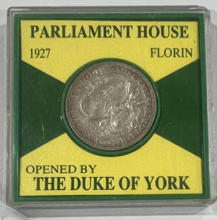 1927 AUSTRALIA SILVER CANBERRA FLORIN IN GREEN PERPEX CASE 311106+80