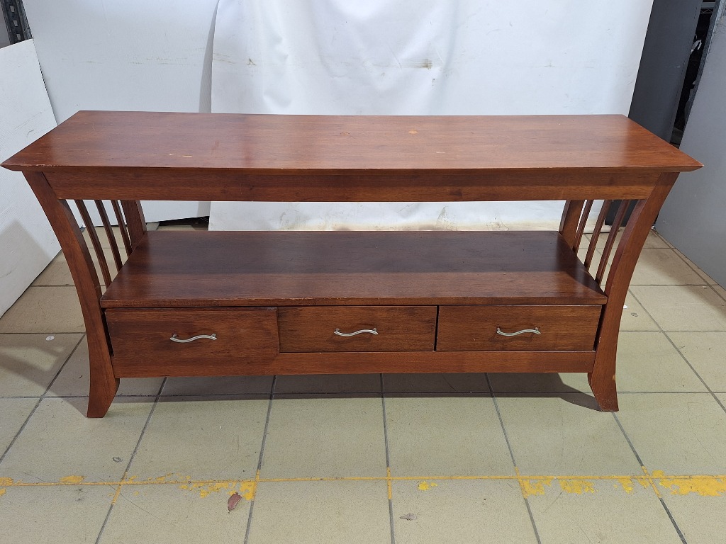 Console or Entertainment Table With 3 Drawers & A Lower Shelf, Timber Style, Brown Finish Dimensions H:71cm W:45cm D:150cm