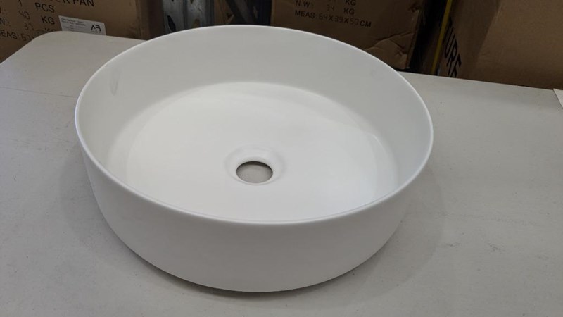 Circular Ceramic Basin, Model: AB3636-MW, Gloss WhiteDimensions: 360mm(Dia) x 120mm(H) NOTE: INSPECTIONS HIGHLY RECOMMENDED