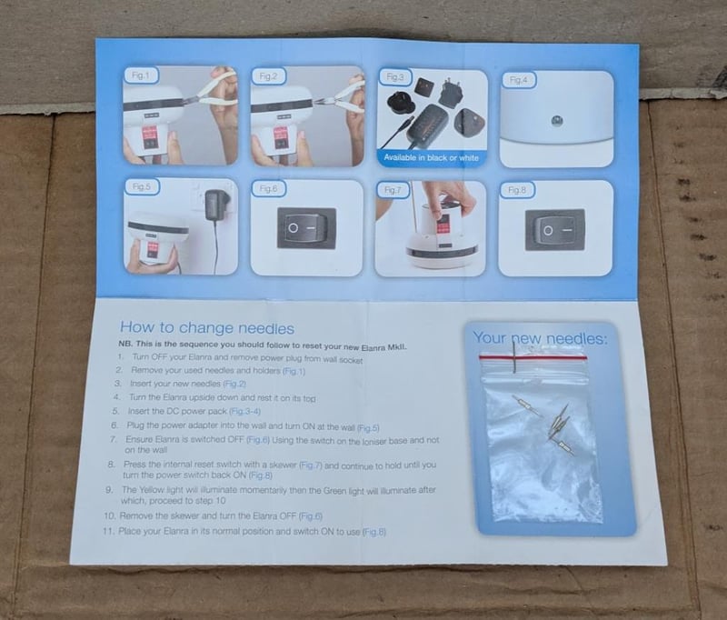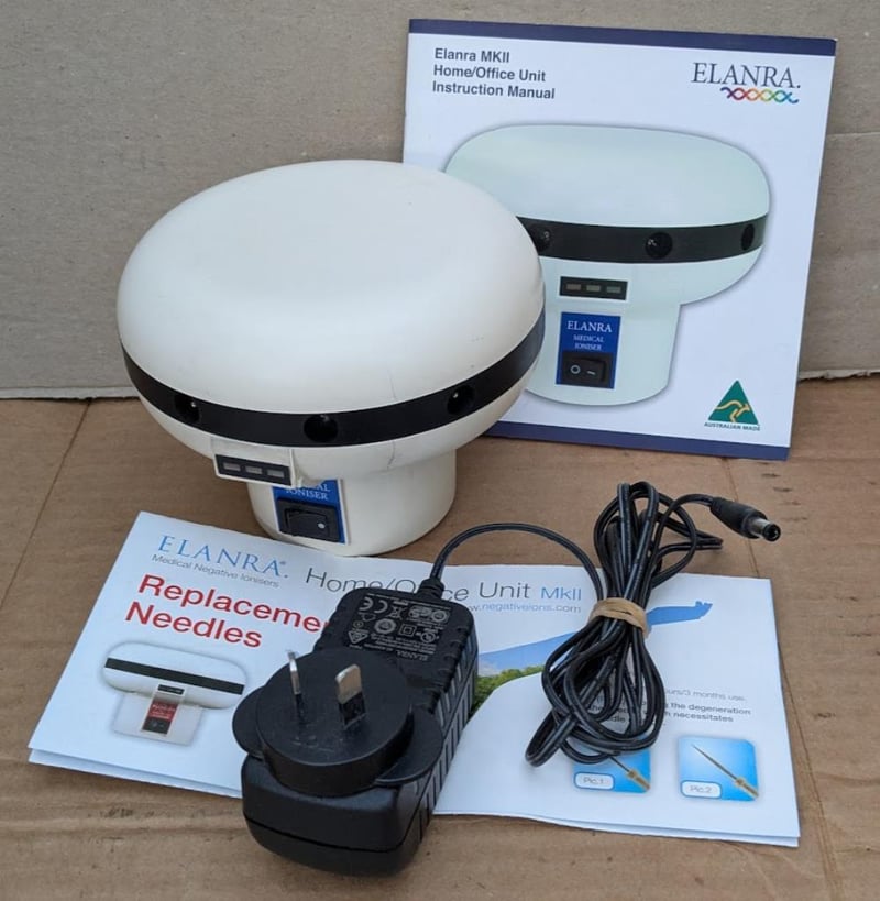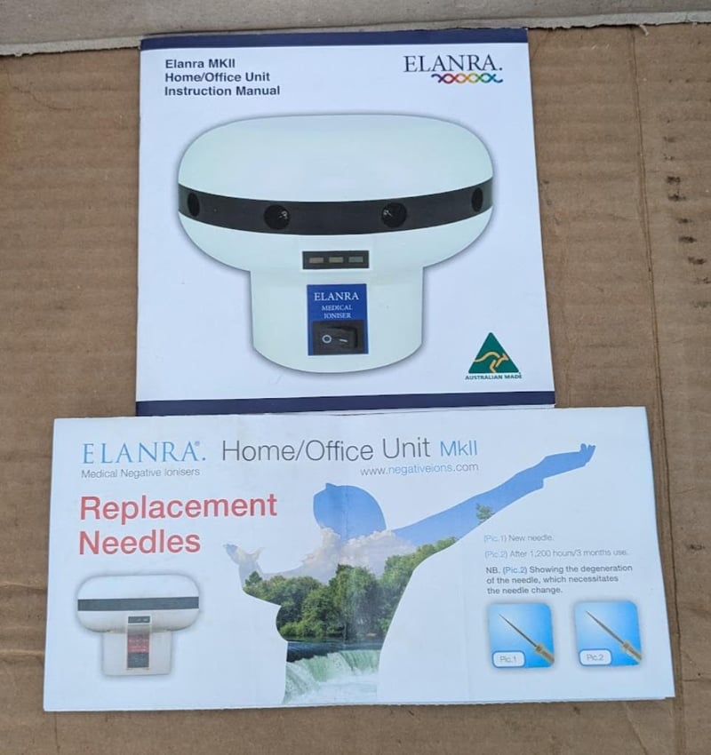 Elanra model MKII medical ioniser unit with 4 needles, power cord and instructions