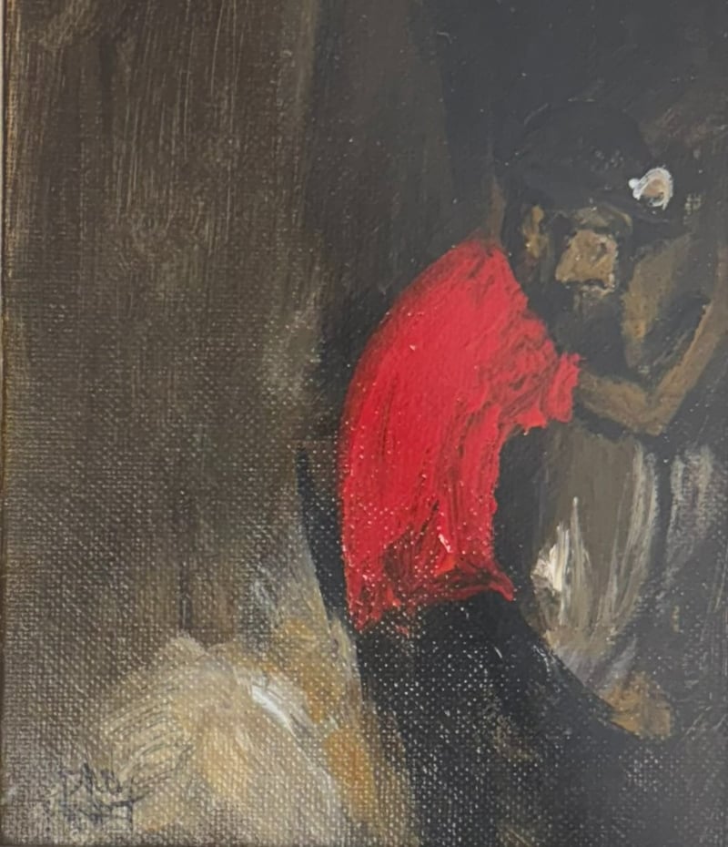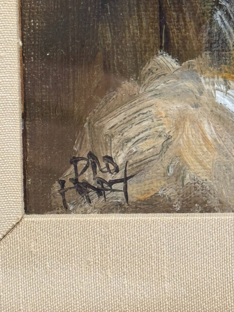 ATTRIBUTED TO KEVIN CHARLES 'PRO HARTOriginal Oil On MasoniteTitle: 'Miner Wearing Red'Image Size: 16cm x 13cmFrame Size: 34cm x 32cmCondition: Good - Refer To Images488235+9
