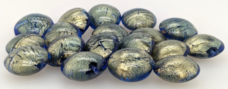 18 X ITALIAN MURANO DRILLED BEADS WITH STERLING SILVER BOLT RING Colour: Blue, Shape: Disc, Size: 18Mm Condition: Good - Refer To Images FC 162953+42