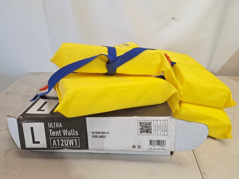 Vuly Ultra Large Tent Walls, x2 Axis Adult PFD (Personal Flotation Device) Level 100 Dimensions H:30cm W:50cm D:40cm SOLD AS LOT