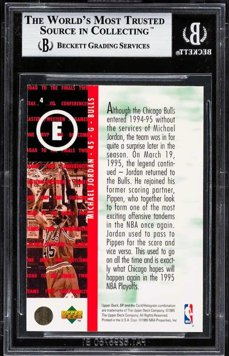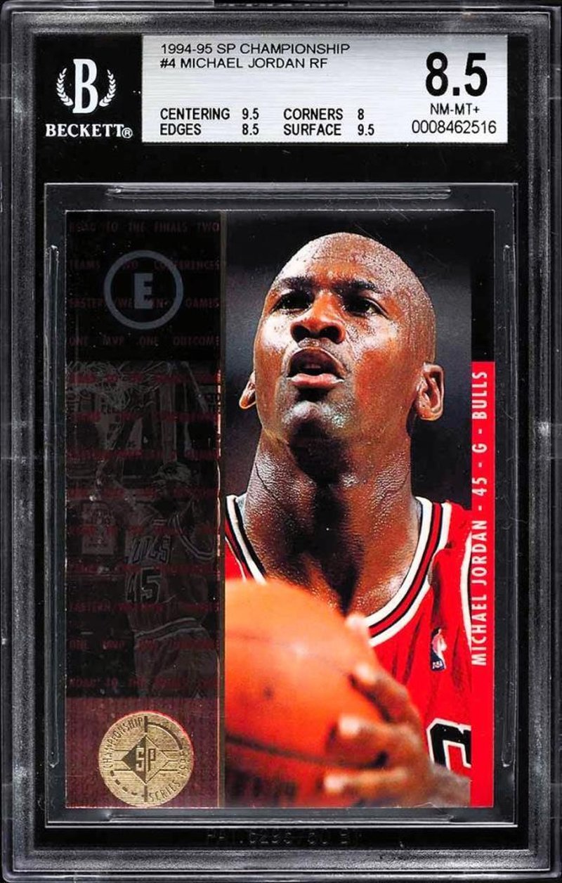 1994 SP CHAMPIONSHIP MICHAEL JORDAN #4 – BGS 8.5 NM-MT+ Offered Here Is The 1994 Sp Championship Michael Jordan #4, Encapsulated And Graded Bgs 8.5. Produced By Upper Deck During Jordan’S Initial Return To Basketball Following His First Retirement, This Card Captures The Legend In Full Chicago Bulls Uniform During An Era Of Global Superstardom. Sp Championship Was Known For Its Premium Photography And Foil-Enhanced Finish, Delivering A Sleek And Modern Design That Remains Sought-After Among Discerning Collectors. Size: 0 Condition: Good - Refer To Images 584998+10