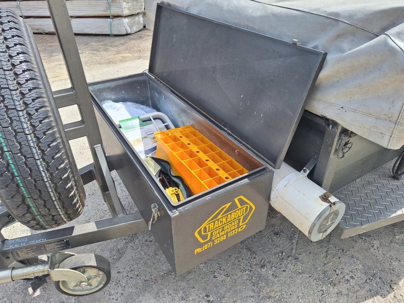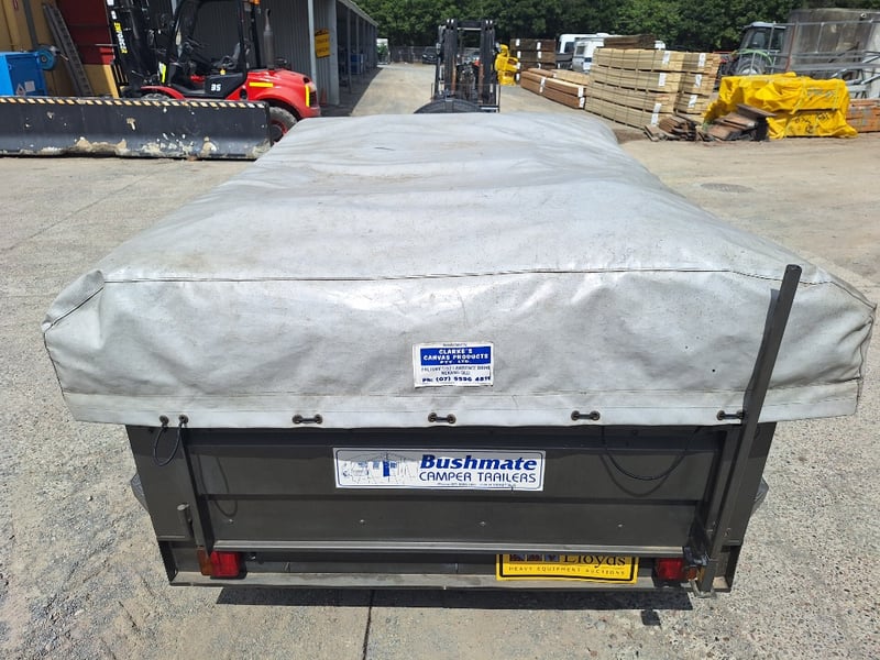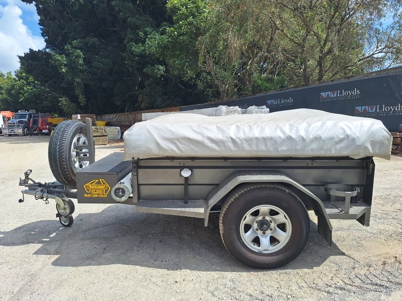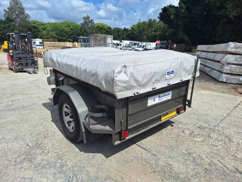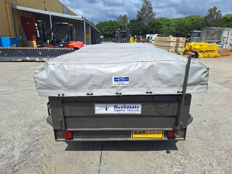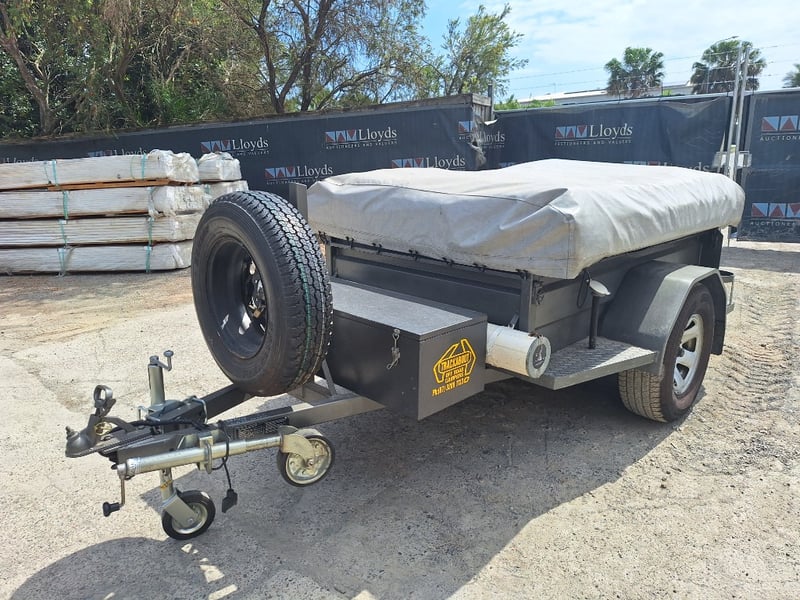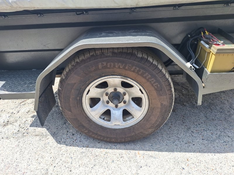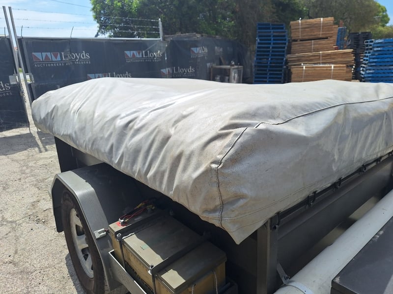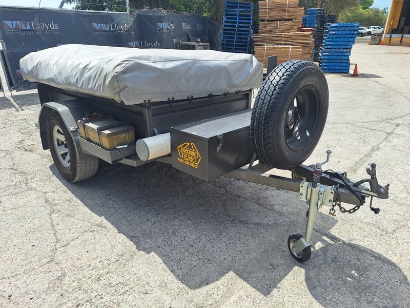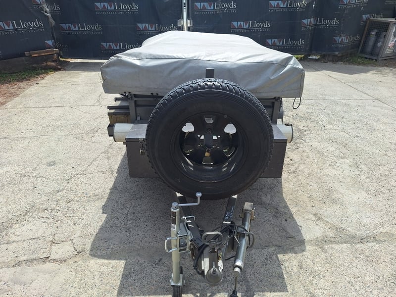 Description/Extras: Soft Top Side Folding Camper Trailer, 50mm Hitch, Dual Jockey Wheels, 7-Pin Flat Male Connection, Spare Tyre, Front Mounted Tool, Box With Accessories, Power Sonic Rechargeable Long Life Battery, With Anderson Plug, Pegs, Poles, Rear Stabilisation Legs