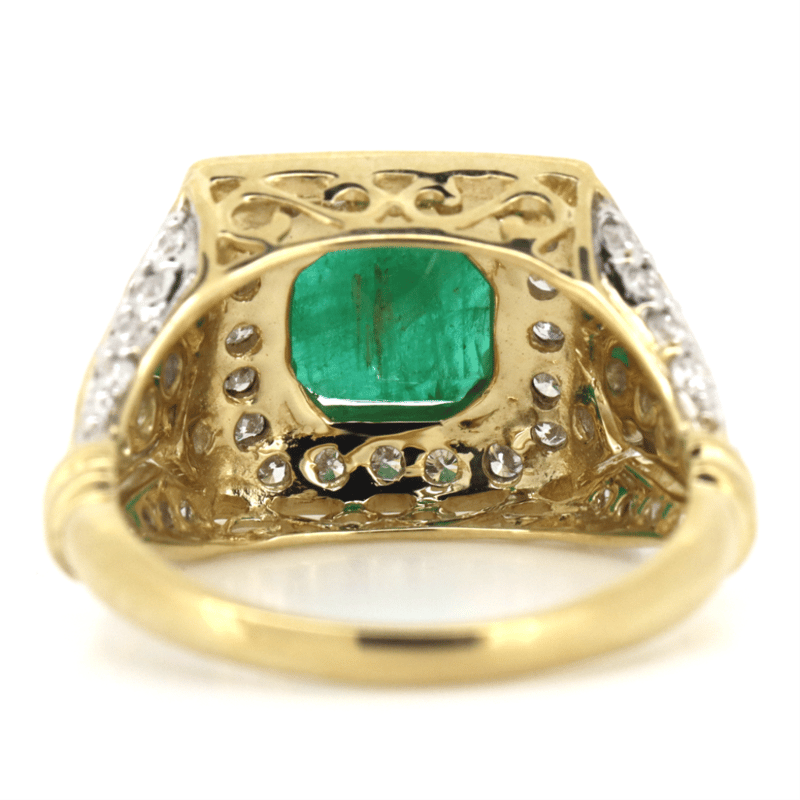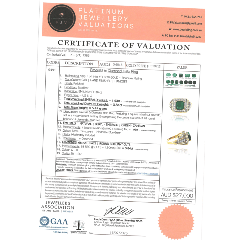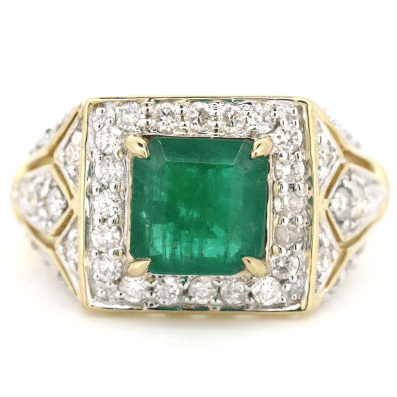 The Centre Features, One Square Emerald Cut, Emerald (1.93Ct, Moderate Inclusions), 4 Claw Set. Encompassing The Centre Are 48 Round Brilliant Cut, Diamonds (0.84Ct Tdw, G-H Colour, Si1-Si2 Clarity), Bead Set. Ring Size M 1/2.