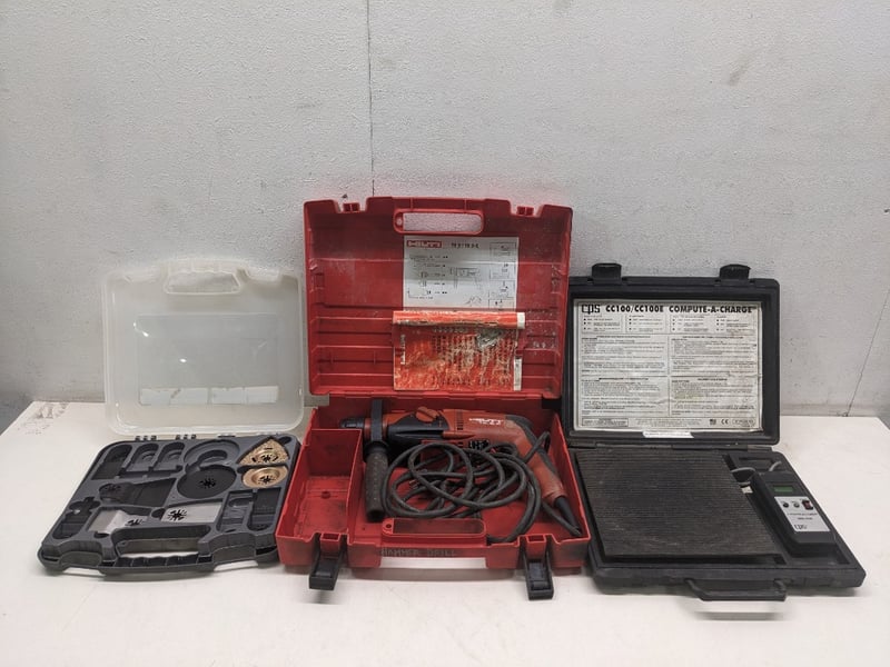 Assorted Tool Lot, Hilti Hammer Drill, CPS Compute-A-Charge Scale & Multi-Tool Blade Set- Hilti Hammer Drill – TE 2 / TE 2-S- CPS Compute-A-Charge Scale – CC100/CC100ENote: Items are untested, & show signs of wear Sold as lot