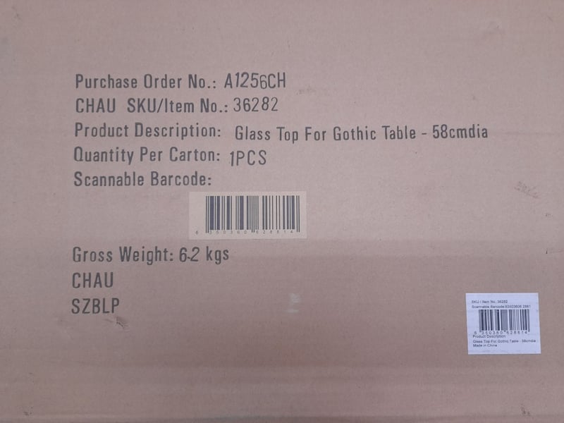 Table Top, Round Glass, 58cm dia, Replacement Part for Gothic Table, SKU 36282, Qty 2Sold as lot