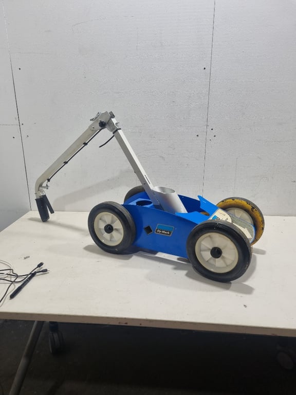 Dy-Mark, Line Master, blue metal. Note: Signs of wear and tear