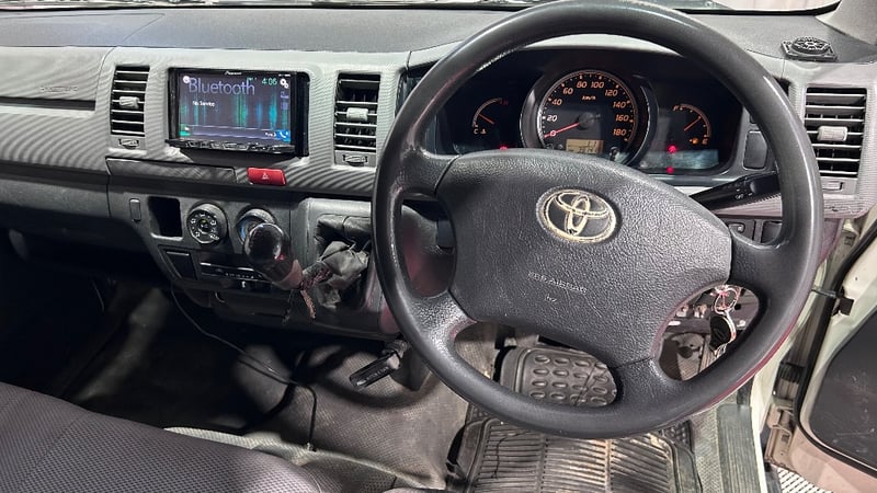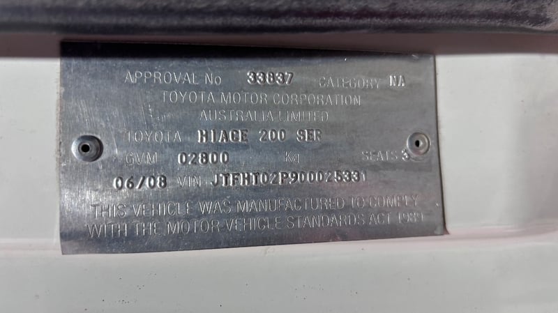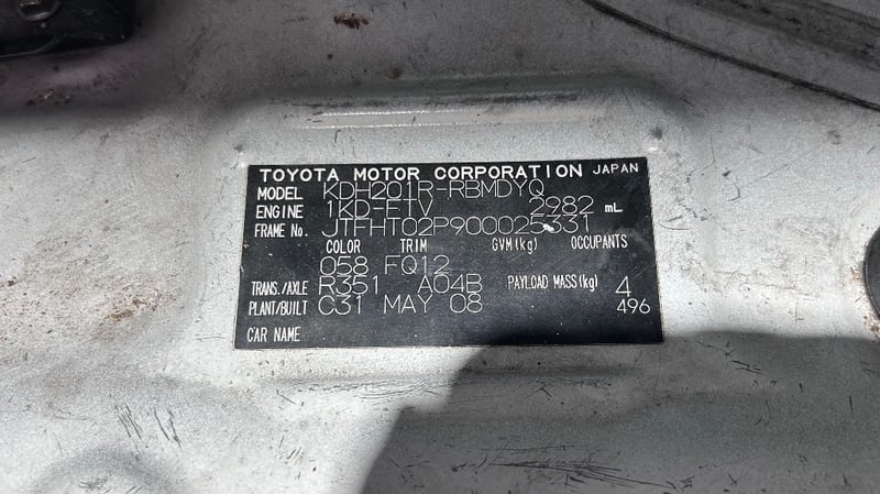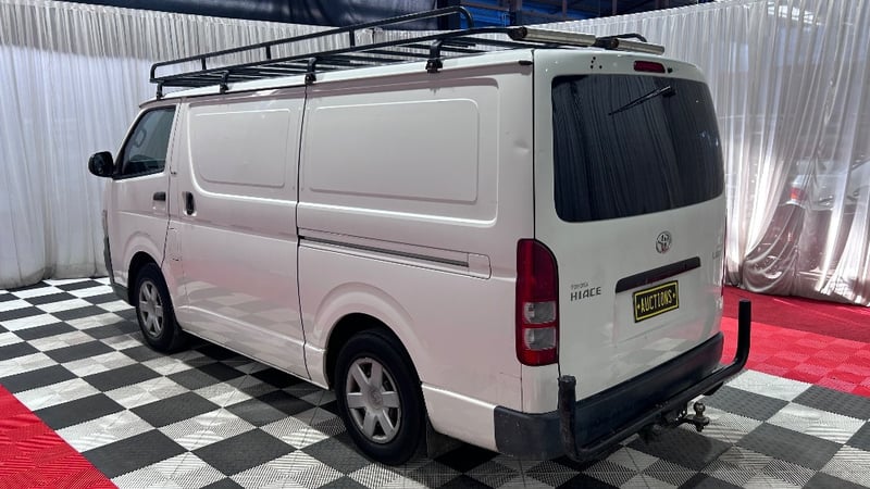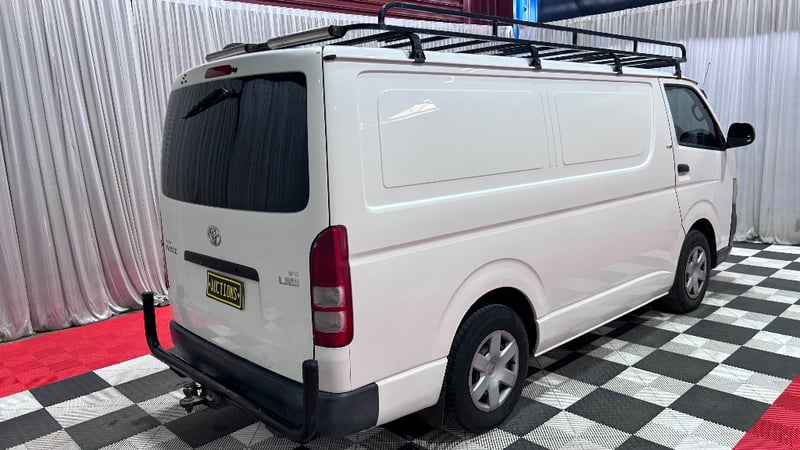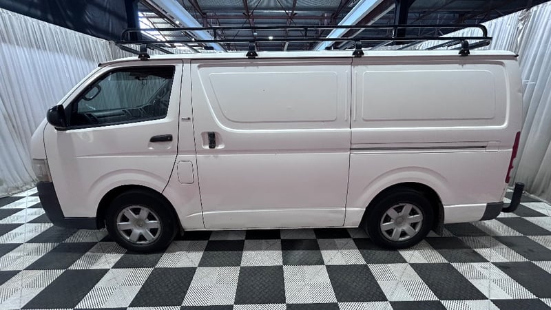 2008 Toyota Hiace KDH201R MY07 LWBYear: 2008Make: ToyotaModel: HiaceSeries: KDH201R MY07Badge: LWB Body: 4-Door VanDrive Type: Rear wheel driveOdometer: Indicating 391,419 KilometresEngine: 3.0 I4 Turbo DieselTransmission: 5-Speed ManualColour: WhiteSeats: 3Description/extras: Air Conditioning, Power windows, SRS, AUX / USB, Towbar, Central locking, CD player. 1 x Key, Roof Rack, Storage Shelving. Minor Paint & Panel Imperfections Refer to Images, Engine Light Present, Faint Rattling Ticking Sound When Idling at Times, Drivers Side Trim Damaged, Inspection Recommended. Price Guide - $6,200 - $8,600 (Based on Unmodified Vehicle) VIN: JTFHT02P900025331ENG No: 1KD1825914#PCV#ONETOTEN(Key #B22)Lloyd's stock #232402+1