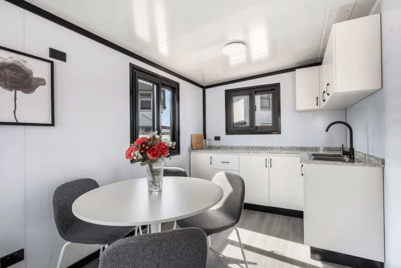 Un-Used Nest 20L Expandable 20FT, ceiling height 2.26, External walls are charcoal in colour, without cladding2 bed, 1 bath, 1 kitchen, External walls are charcoal in colourThe Nest 20L presents a thoughtfully designed two-bedroom layout, complemented by a kitchen with natural stone benchtops and overhead cupboards. The bathroom is elegantly appointed with a stone vanity, shaving cabinet, and provision for a washing machine. Additional features include metal fly screens on doors and windows, provision for air conditioning, and an entry canopy with lighting for added comfort and convenience.FeaturesTwo-bedroom layoutKitchen with overhead cupboards and a natural stone benchtopBathroom featuring a natural stone vanity, shaving cabinet, and provision for a washing machineMetal fly screens on doors and windowsProvision for air-conditioningIncludes an entry canopy and lightingCertified electrical and plumbingAll loose item including Display Furniture and Air Condition Unit are NOT includedSpecificationsSize when opened:5900 x 6420 x 2260mmSize when closed:5900 x 2260 x 2550mmArea: 37.8m2Weight: 4250kgInternal ceiling height: 2260mmFor more info: King Cheung | Ph: 0477987576 | [email protected] Location: Heidelberg West VIC 3081Collection for appointment ONLYThe buyer is responsible for arranging suitable crane and transport for collection.