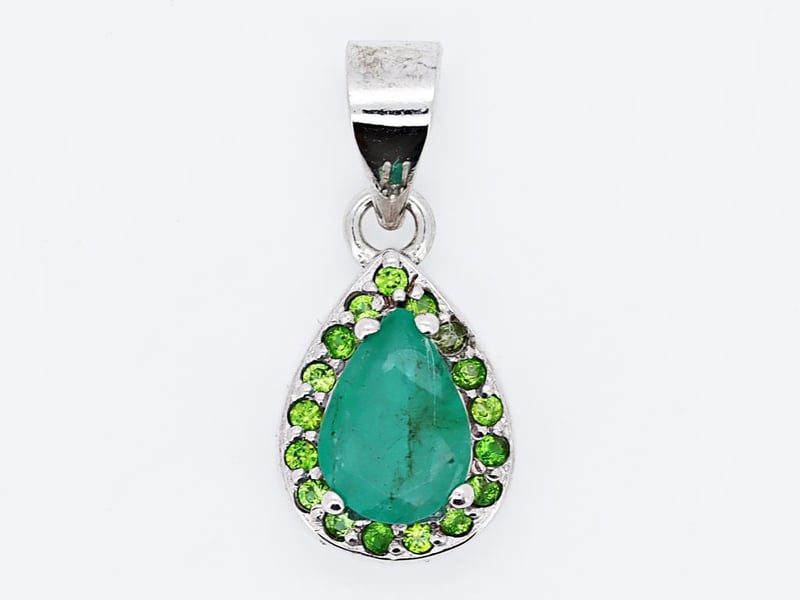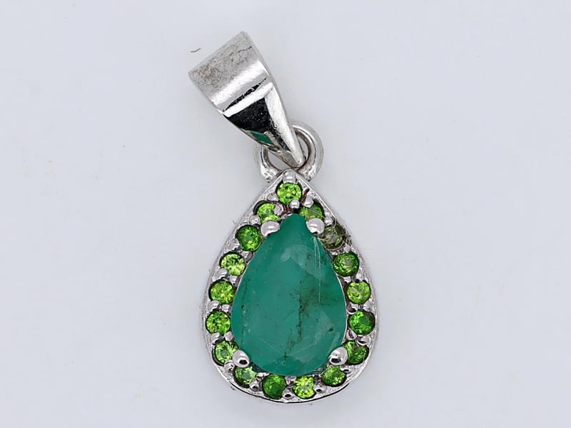 NATURAL EMERALD & TSAVORITE (UNTREATED) PENDANT ON 925 SILVER - WITH DIGITAL CERTIFICATE ONLY
