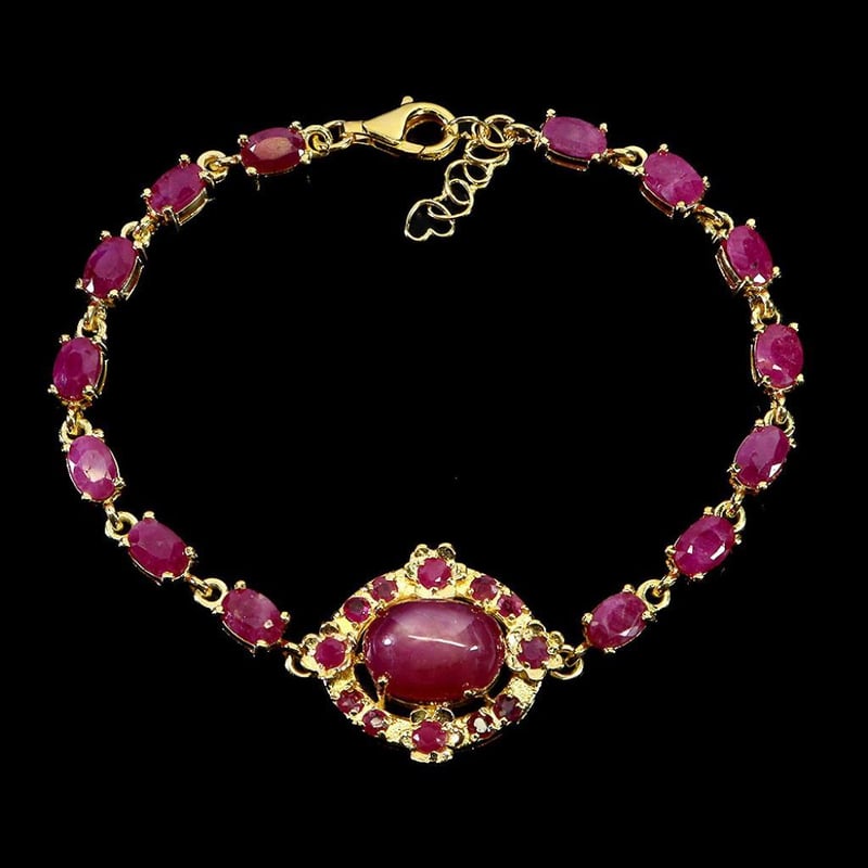 Natural Ruby Tennis Bracelet. Made In Solid Sterling Silver And Plated In14K Yellow Gold. Features Natural Red Rubies, Bracelet Measures 7.5 Inches.