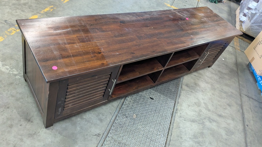 Tv Entertainment Unit, Dark Stained Timber Construction, Side Storage, 2 Tier Central Storage Dimensions: 1950mm (W) x 500mm (D) x 500mm(H)