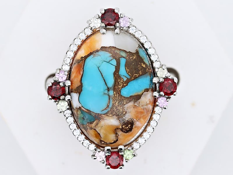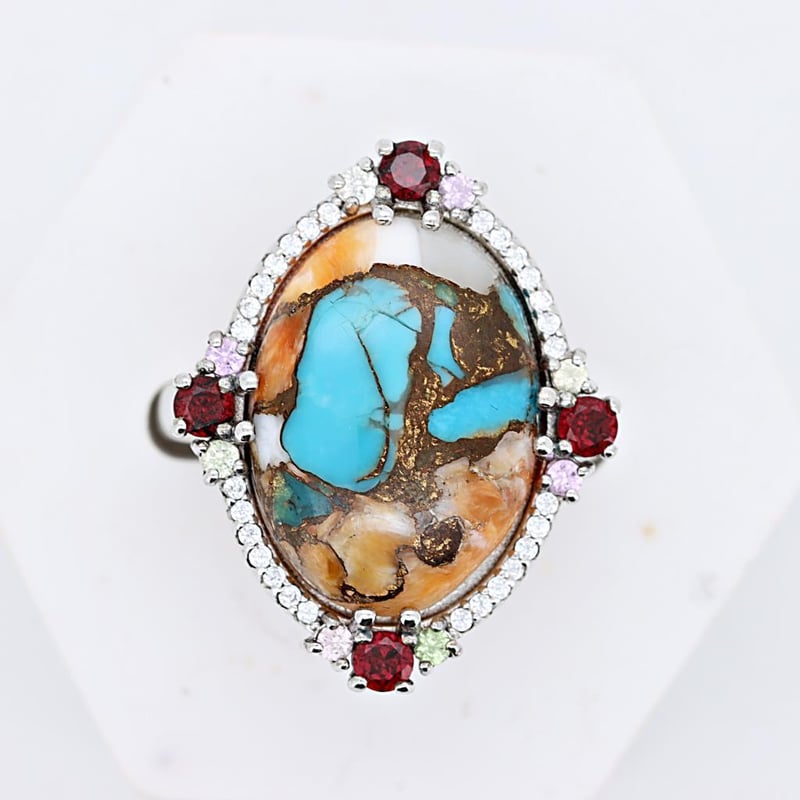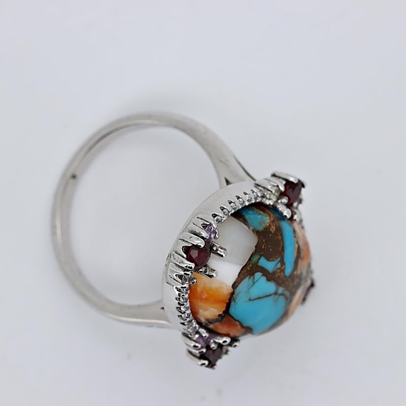 NATURAL MOHAVE TURQUOISE & UMBALITE GARNET RING ON 925 SILVER - WITH DIGITAL CERTIFICATE ONLY Gemstone : Natural Mohave Turquoise & Umbalite GarnetCertificate (Digital): Bigl20240122132882Item Total Weight : 7.42 GramsMain Stone Color : MulticolorSize : 7.3Comments : Main Stone (Turquoise) Has No Indications Of Treatment.Surrounding Stones (Umbalite Garnet) Have No Indications Of Treatment.✻ Verify Report Online At Www.Bangkokinternationalgemlab.Co Condition: Good - Refer Images 01611138+28