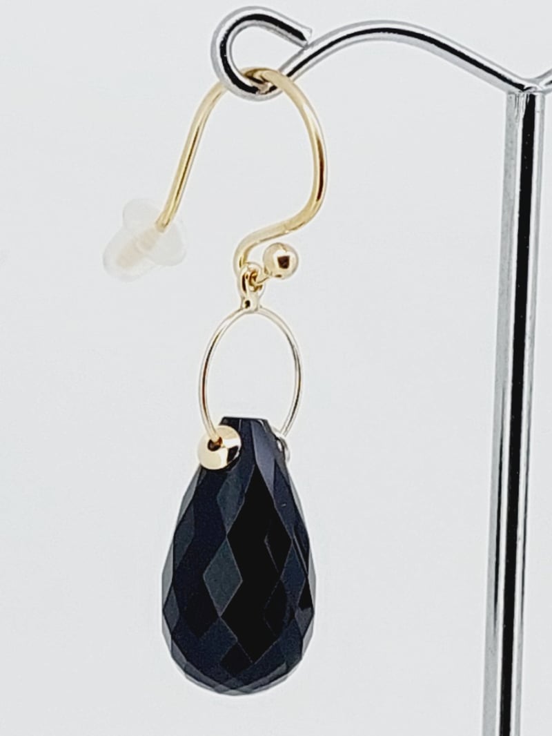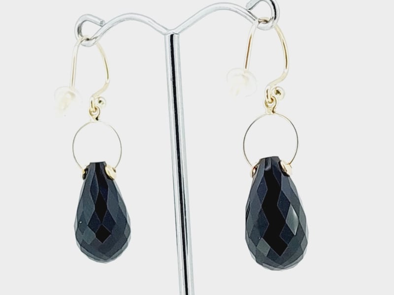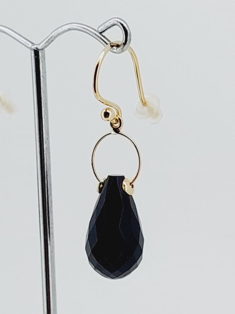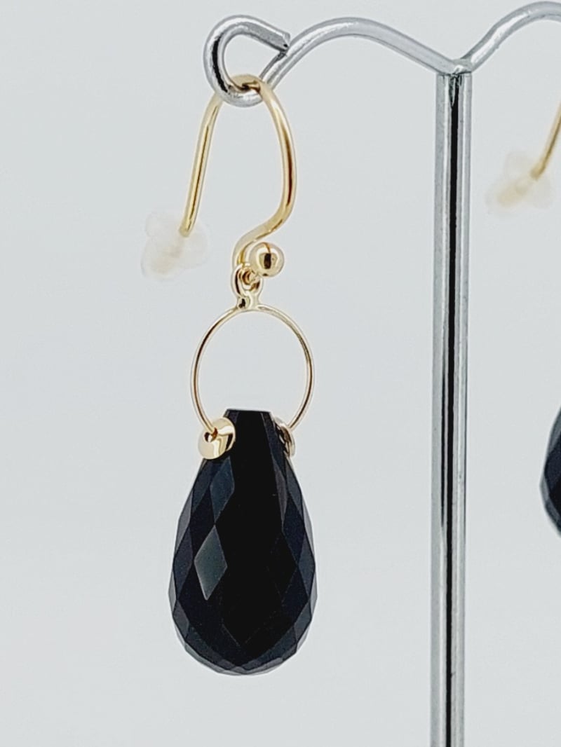 9K YELLOW GOLD ONYX TEARDROP EARRINGS Condition: Good - Refer To Images CROSSDOCK 162949+33