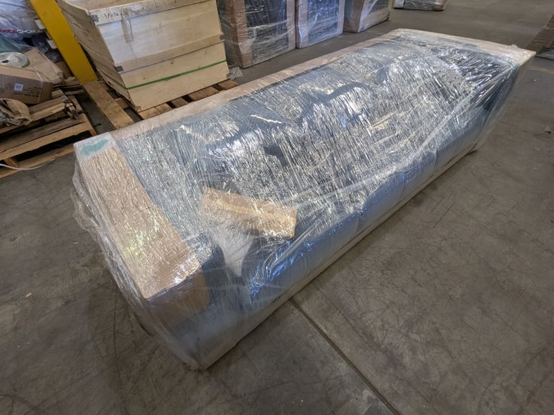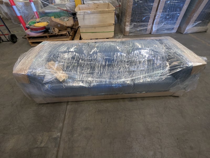 3 Seater Sofa, Blue Fabric On-site Inspection Recommended, Refer to Images Note: Some Items Have Slight Damage, Scuff Marks & Stains, Some Items Marked Warehouse Rejected PARTS MAY BE MISSING, INSPECTION HIGHLY RECOMMENDED PARTS MAY BE MISSING, INSPECTION HIGHLY RECOMMENDED