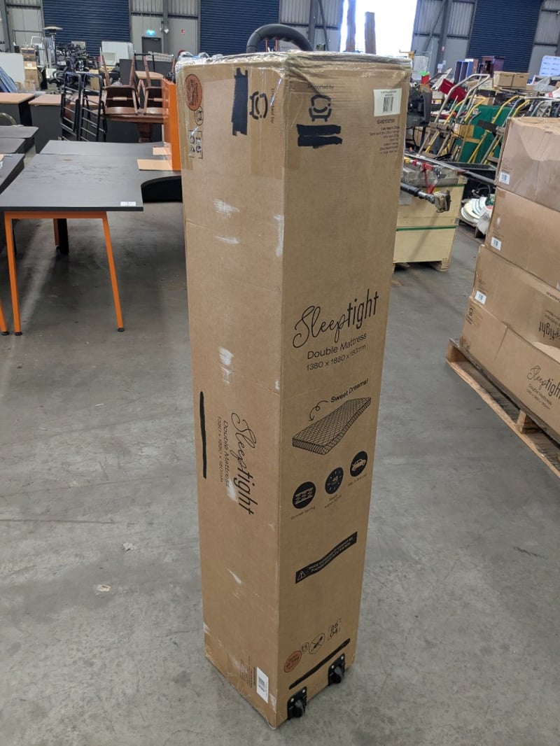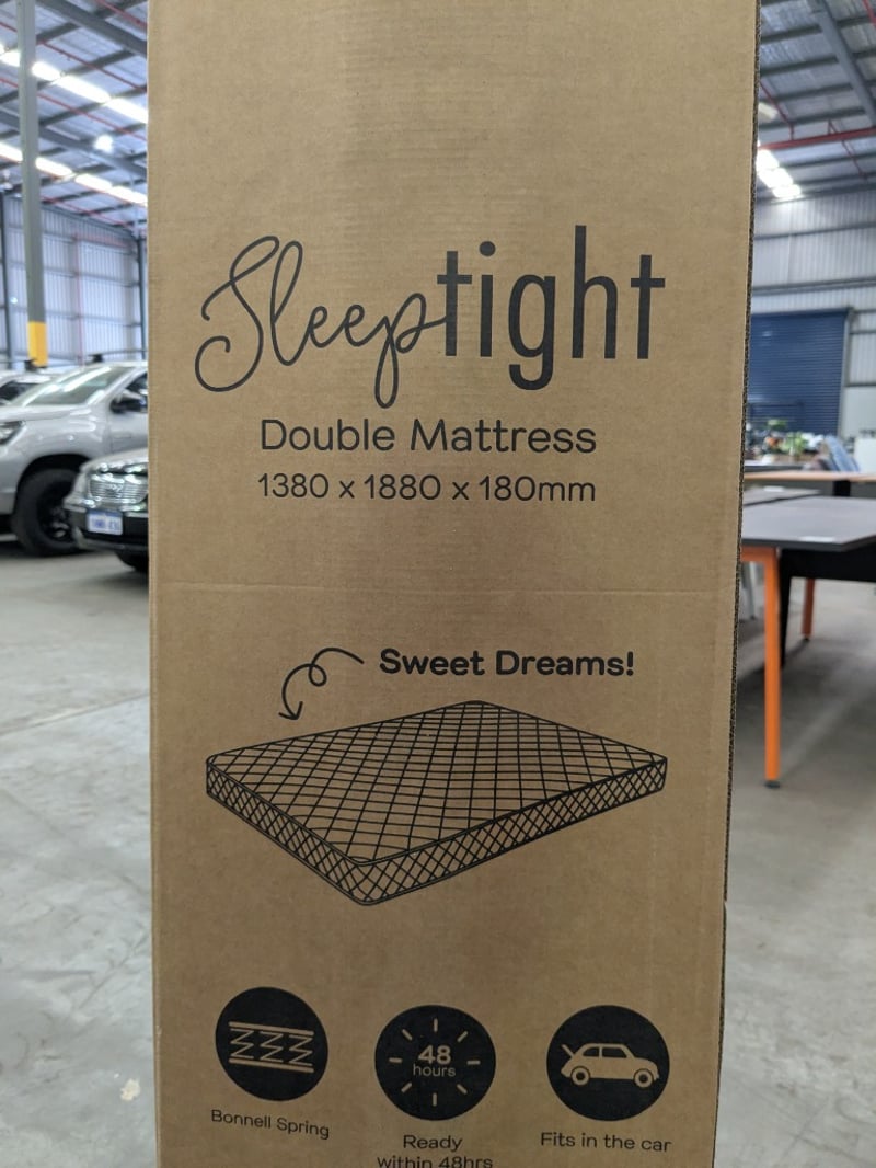RRP$189 Sleeptight Double Mattress, In Box, Approximate Dimensions: H 18 cm x W 138 cm x D 188 cm. On-site Inspection