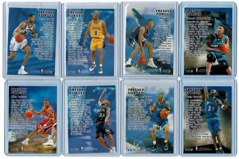 1996–97 FLEER METAL "FRESHLY FORGED" COMPLETE INSERT SET (15/15) – INCLUDES KOBE BRYANT, ALLEN IVERSON, RAY ALLEN, GARNETT, MARBURY & MOREExceptional Insert Subset From One Of The Most Iconic Basketball Card Eras – Featuring The Greatest Rookie Class Of The 1990S, Each Card In Exceptional Condition!Overview:Presented Here Is The Complete 15-Card “Freshly Forged” Insert Set From The 1996–97 Fleer Metal Basketball Release – A Highly Sought-After Early Chromium-Style Issue That Has Become Increasingly Difficult To Assemble In Full. The 1996–97 Season Is Now Widely Regarded As The Definitive Modern Rookie Class, With This Insert Set Boasting Names Such As Kobe Bryant, Allen Iverson, Ray Allen, Stephon Marbury, Shareef Abdur-Rahim, Antoine Walker, And Many Others. With Its Distinctive Foil-Based Metallic Finish, Embossed Texturing, And Futuristic Design, The Freshly Forged Series Was A Standout Even At The Time Of Release – And Today Serves As A Time Capsule For The Explosion Of Talent That Entered The League In 1996.Key Features:Each Card Features Premium Metallic Foil Printing With Bold Player Imagery And Dynamic Pose Selection. The Cards Highlight Rookies And Emerging Stars Who Were Considered To Be “Forging” Their Place In The Nba At The Time. Most Notable Is The Inclusion Of Kobe Bryant’S Freshly Forged Rookie Insert, Considered One Of The Most Collectable Non-Base Rookies Of His Early Fleer Metal Portfolio. The Allen Iverson Entry Also Stands Out As A High-Profile Parallel To His Standard Rookie Offerings.Why This Set Is Collectable:Beyond The Foil Finish And Mid-90S Design Flair, This Set Encapsulates A Generation-Defining Rookie Class. With Multiple Hall Of Famers And Nba Champions Represented, The Freshly Forged Set Is Now Regarded As A Benchmark For 90S-Era Collecting. Given The Difficulty In Sourcing All Cards Individually—Particularly In Clean Condition—Complete Sets Are Increasingly Scarce, Especially With The High-Profile Rookies Intact.Collector Appeal:This Full 15-Card Insert Set Is Ideal For Collectors Focusing On Kobe Bryant Or Allen Iverson, Those Building Complete Fleer Metal Collections, Or Investors Seeking High-Visibility 1990S Rookie Content. A Strong Visual Display Set, This Collection Also Serves As An Excellent Centrepiece Or Set-Breaker. It Is Rear To Have All 15 Cards In A Single Set And To The Evident Quality Of The Attached. Each Card Has Been Penny Sleeved, Hard Cased, And Protected Since First Being Obtained.584885+19