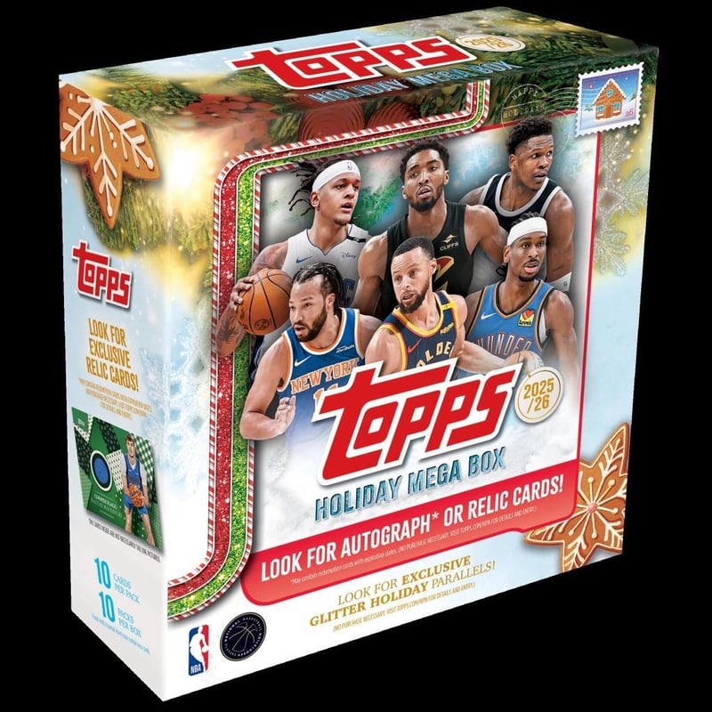 2025-26 TOPPS HOLIDAY BASKETBALL MEGA BOXEach Box Contains 6 Base Holiday Glitter Parallels, 1 Base Holiday Blue Metallic Glitter Parallel, 1 Base Holiday Light Blue And White Glitter Parallel, 1 Short Print Card (Base Holiday Variation Ssp Or Base Holiday Backs Variation Ssp), 1 Oversized Die-Cut Ornament.2025 Topps Holiday Basketball Arrives Just In Time For The Holiday Season, Delivering Festive Fun And Nba Excitement To Collectors Of All Ages. Featuring The League’S Brightest Rookies And Most Iconic Veterans, This Set Captures The Magic Of Basketball With A Holiday Twist.The 200-Card Base Set Showcases Top Rookies And Stars From Across The Nba, Designed With Seasonal Flair That Makes It A Perfect Collectible For The Most Wonderful Time Of The Year. Collectors Can Hunt For Ssp Base Variations, As Well As Rare Inserts And Autographs From The Game’S Biggest Names.From Festive Variations To Oversized Ornament Cards, 2025 Topps Holiday Basketball Is A Must-Have For Collectors Looking To Unwrap The Spirit Of The Season.Condition: Good - Refer To Images488292+33407