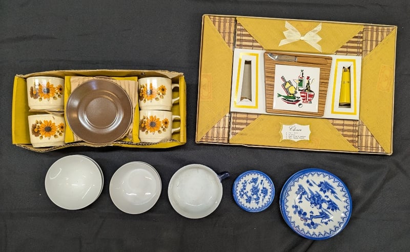 COLLECTION OF HOMEWARE SETSIncludes Decorative Ensemble, 4 Piece Ceramic Cup And Saucer Set, And Porcelain Bowl Set.Condition: Good - Refer To Images584936+7