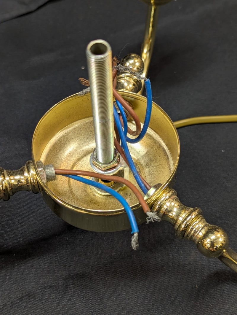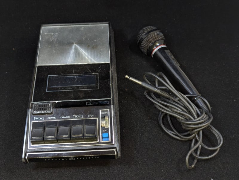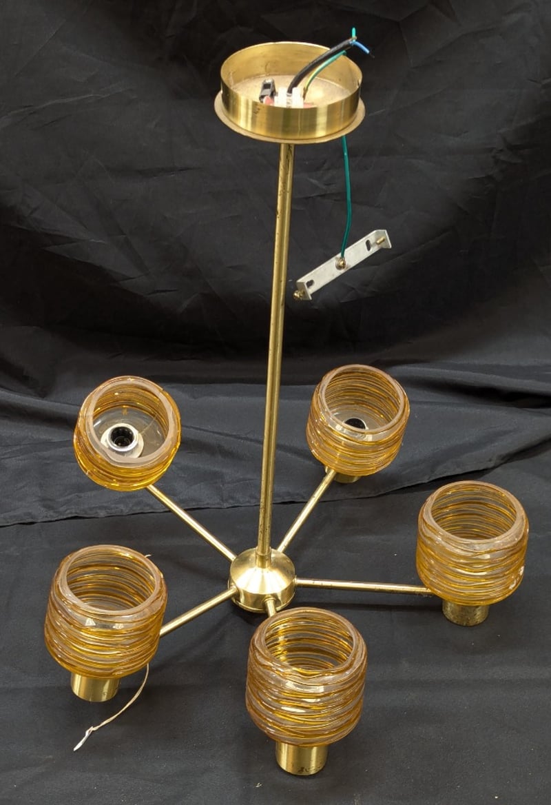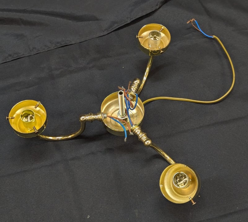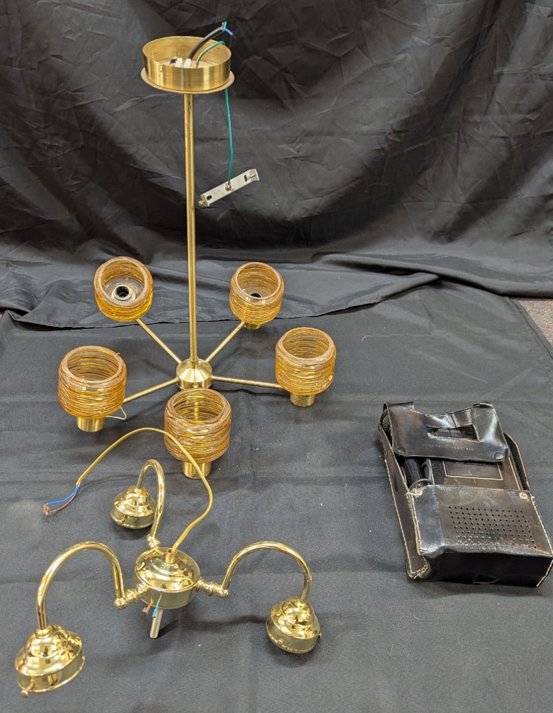 COLLECTION OF ESTATE ITEMSIncludes General Electric Portable Cassette Recorder With Microphone, Brass And Glass Chandelier, And 3-Arm Brass Chandelier.Condition: Good - Refer To Images584936+20